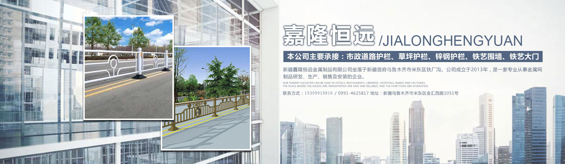 新疆嘉隆恒遠(yuǎn)金屬制品有限公司坐落于新疆首府烏魯木齊市米東區(qū)鐵廠溝。公司成立于2013年,是一家專業(yè)從事金屬網(wǎng)制品研發(fā)、生產(chǎn)、銷售及安裝的企業(yè)。 本公司主要承接 市政道路護(hù)欄、草坪護(hù)欄、鋅鋼護(hù)欄、鐵藝圍墻、鐵藝大門。 公司購(gòu)進(jìn)一批新的生產(chǎn)設(shè)備,生產(chǎn)能力、廠區(qū)環(huán)境得到大步提升、我公司將以全新的面貌、以更優(yōu)質(zhì)的產(chǎn)品、更高的效力、為你提供更全面的服務(wù)。 公司承諾將以齊全的品種、優(yōu)質(zhì)的產(chǎn)品、良好的服務(wù)、超值的價(jià)位竭誠(chéng)為廣大新老客戶服務(wù)。 隨著西部大開(kāi)發(fā)的加快,我公司將依托新疆有利的資源,打造出新疆生產(chǎn)規(guī)模大、品種全的生產(chǎn)基地,迎接更美好、更輝煌的明天。 歡迎來(lái)電咨詢,實(shí)地考察,一次合作,終身是友。